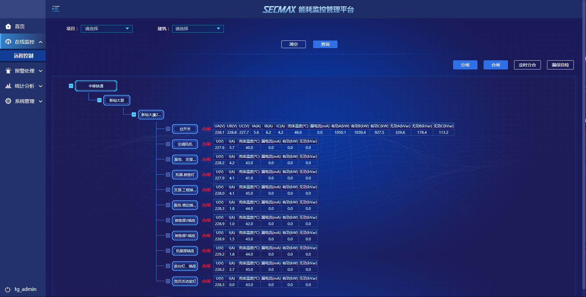同時(shí),平臺(tái)還可實(shí)現(xiàn)故障保護(hù)、故障研判、能耗分析、智能控制、節(jié)能量計(jì)算、碳排放核查等功能。做到電氣安全全面防范以及低壓線路全面智能管控,實(shí)時(shí)跟蹤分析節(jié)能行動(dòng)的效果和完成情況,比對(duì)能源消耗排放、生產(chǎn)力水平和溫度變化等,打造具有典型性和可推廣性的智能化建筑樣板,管理人員還可以通過能耗監(jiān)控管理APP實(shí)時(shí)掌握能耗數(shù)據(jù),查看設(shè)備運(yùn)行情況,并實(shí)現(xiàn)遠(yuǎn)程控制開關(guān),大大的提高了工作人員的效率。