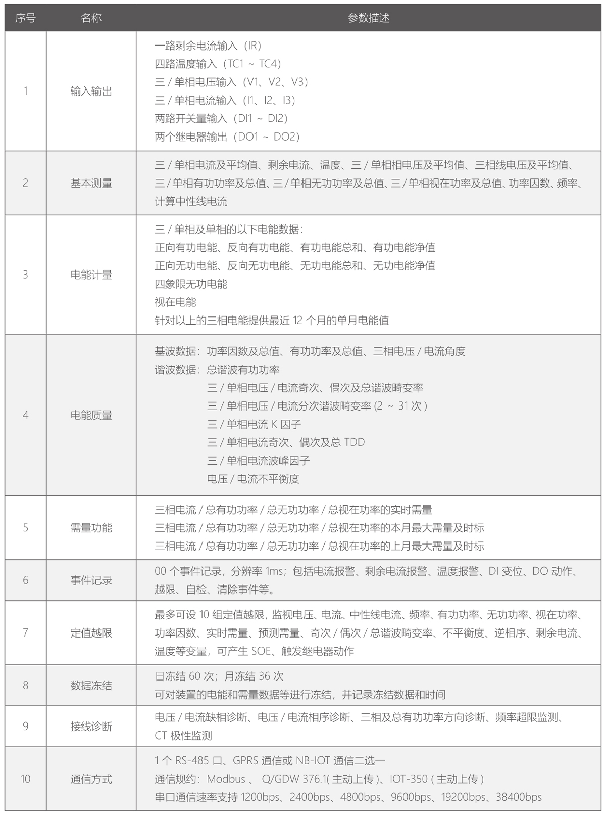 支持需量計算、諧波計算、定值越限、數據凍結等表計功能