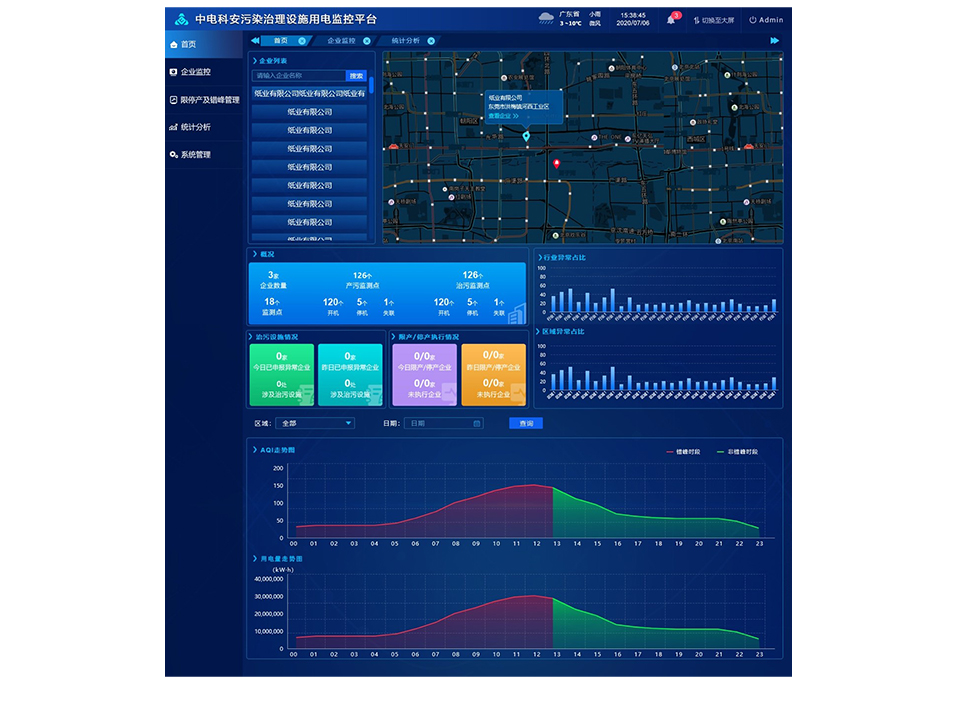 分表計電環(huán)保用電監(jiān)控系統(tǒng)平臺依托創(chuàng)新的智能斷路器等智能終端產品,實時采集企業(yè)生產用電數據、環(huán)保治理設備用電數據,將環(huán)境監(jiān)管關口從監(jiān)督企業(yè)污染排放前移至監(jiān)控企業(yè)用電量,對轄區(qū)內重點企業(yè)的產污、治污、排污全過程企業(yè)、生產設施、環(huán)保治理設施用電量實行24小時監(jiān)控,確保企業(yè)廢氣處理設施正常運行、污染物達標排放。